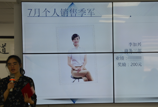 曾经有人问一位哲学家,一滴水怎么样才能够不干枯呢?哲学家回答说就是把它放到大海里边去.这就犹如个人与团队的关系,一个强大的团队一定有突出的个人。此次的销售季军是秀外慧中的商务三部的李加兴。恭喜她,又一次进入前三。