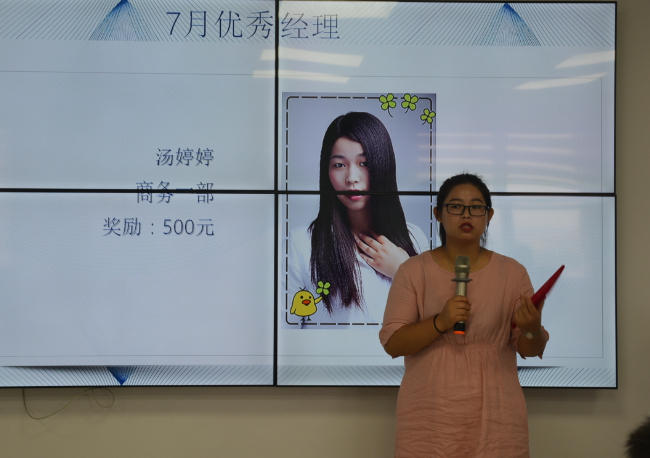 高素质的团队离不开领头羊的策谋,因为他们的优秀才能有这样傲人的业绩,他们是公司的栋梁,更是公司的希望,每个部门的业绩能否实现,全靠他们的指导有方,7月优秀经理的获得者是商务一部的汤婷婷。