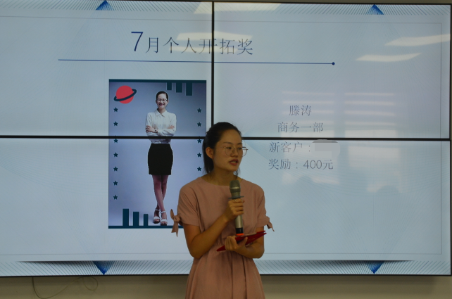 做销售不容易,日晒雨淋、早出晚归,给客户赔笑脸、不仅脾气好、还要脸皮厚、不仅要吃的苦,还要耐得烦。今天的个人开拓奖是商务一部的滕涛。