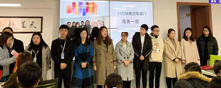 放弃个人自我意识,专注团队目标实现。让他们从不平凡,走向不简单,他们是最有凝聚力的部门。荣获11月销售冠军部门的就是商务一部。